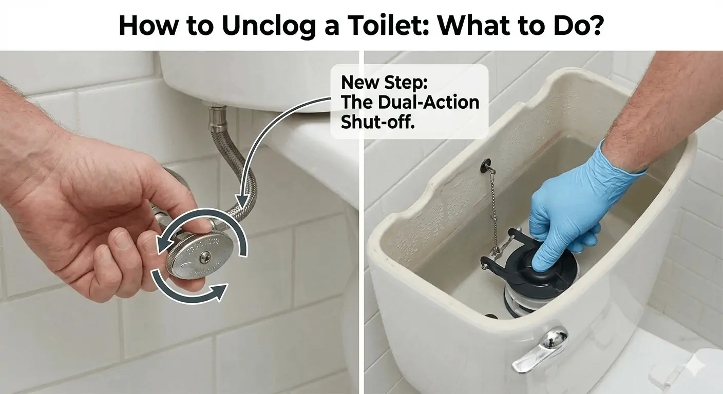 If you just flushed and the water is climbing toward the rim, you have a very short window to act. Forget the plunger for a moment—save your flooring first. Every inch of water on your tile or laminate is a step toward a $3,000 restoration bill.