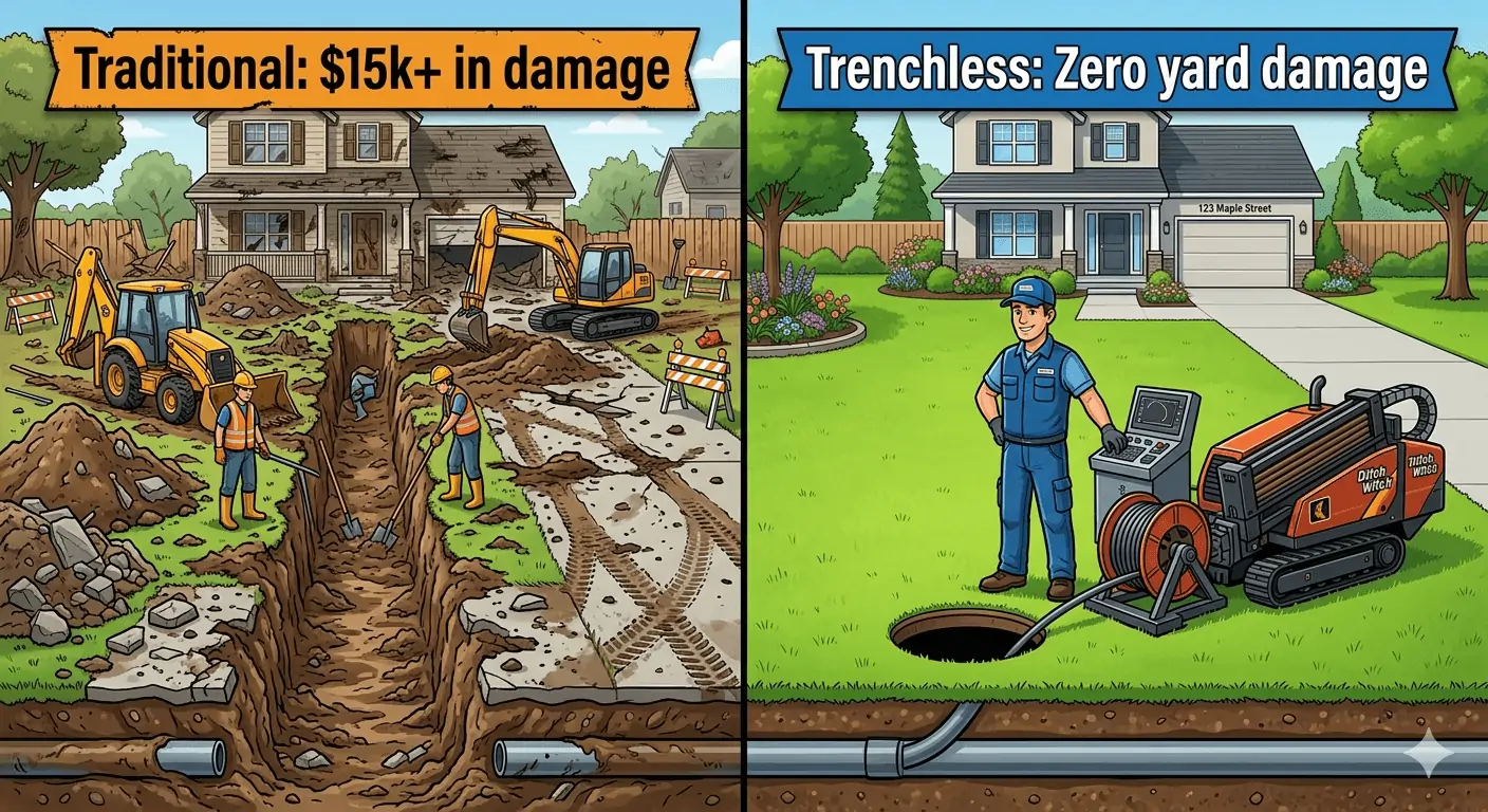 | The Comparison | Trenchless (CIPP/Bursting) | Traditional (Dig & Replace) |