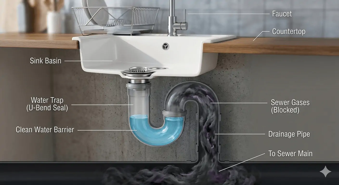If you’ve ever looked under your sink and wondered why the pipe takes a sudden, U-shaped dip before heading into the wall, you’re looking at the most important safety feature in your home’s plumbing: the P-trap.