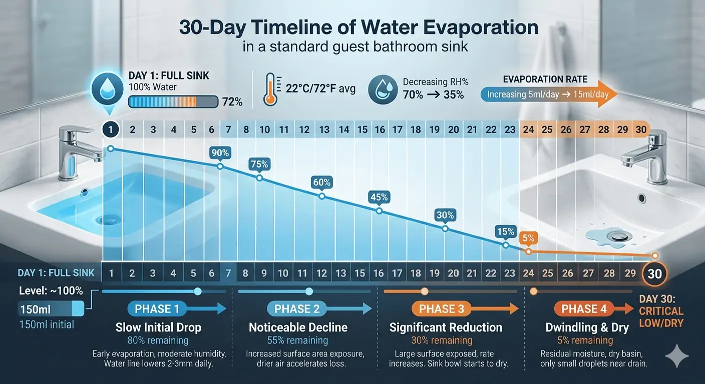 In the South Florida heat, if a guest bathroom goes unused for a few weeks, the water seal can evaporate. At 75°F, a sink can lose about 2.2 inches of its water seal in a single month [4].