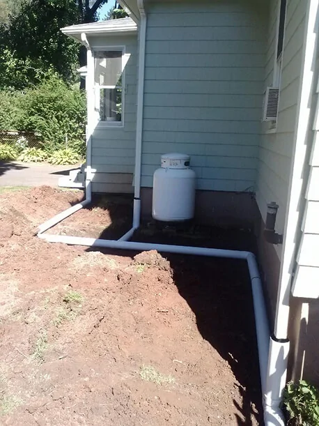 Getting water away from the house is just as important. We extend down spouts, install underground drain pipes, French drains, and dry wells to channel water safely away from your foundation and prevent pooling and erosion in your yard.